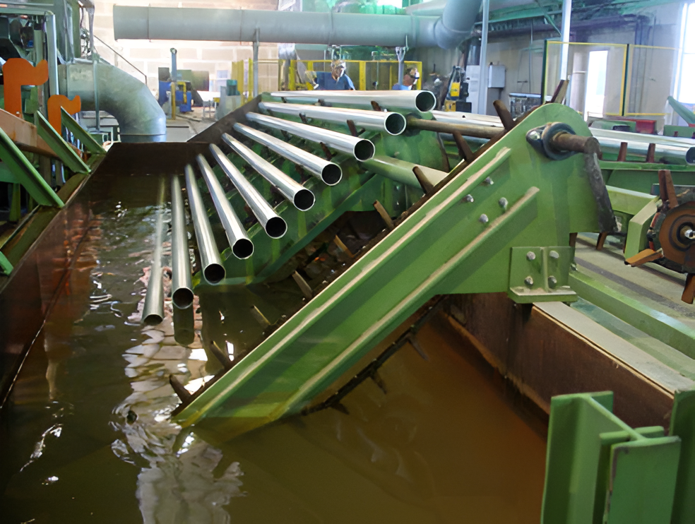 3) Than it comes to pickling section where pipe is treated by acid to remove unwanted dust and impurities from the pipe.